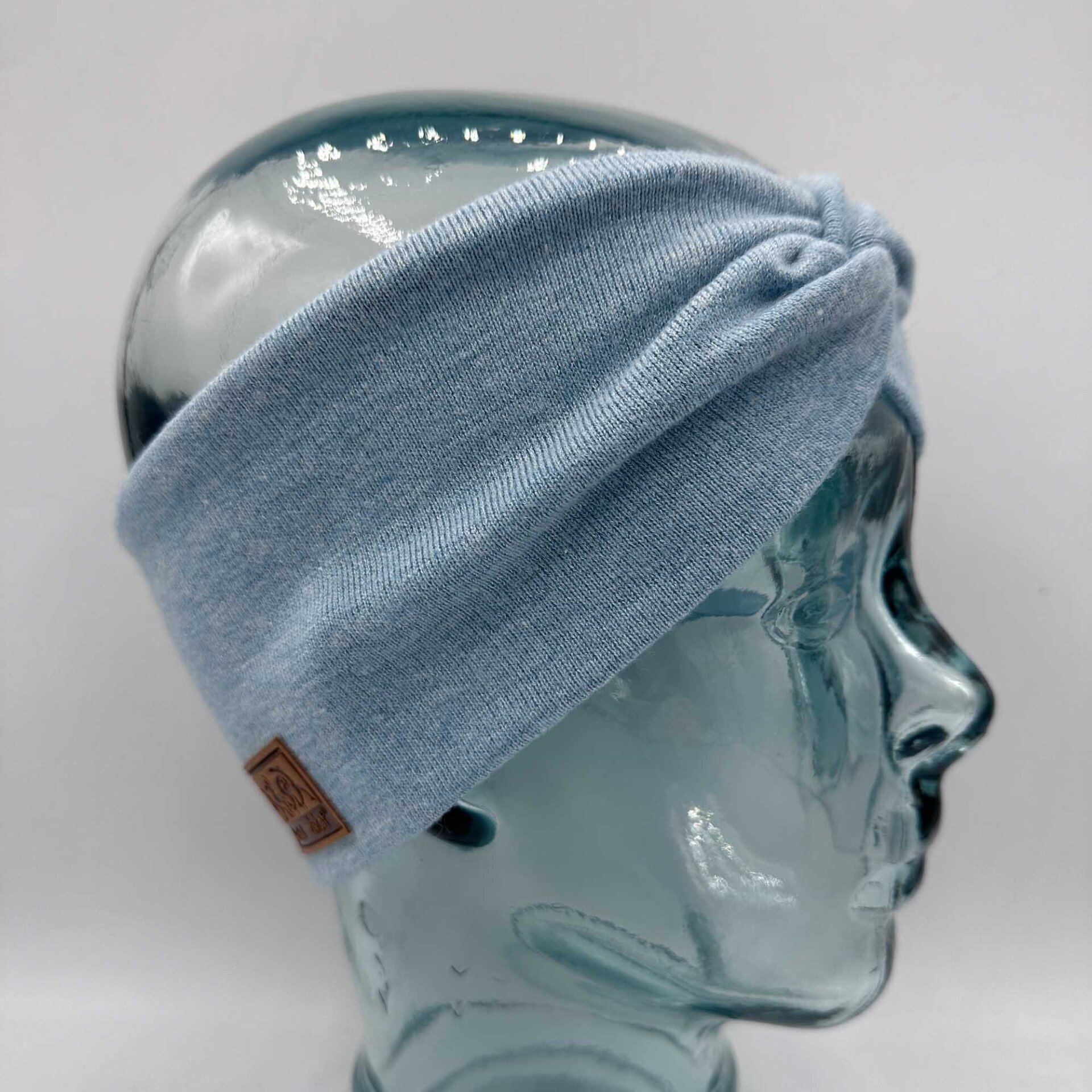 Knotenstirnband Viskosestrick hellblau